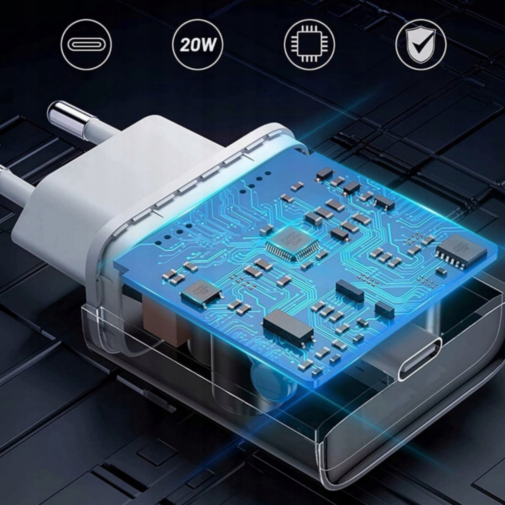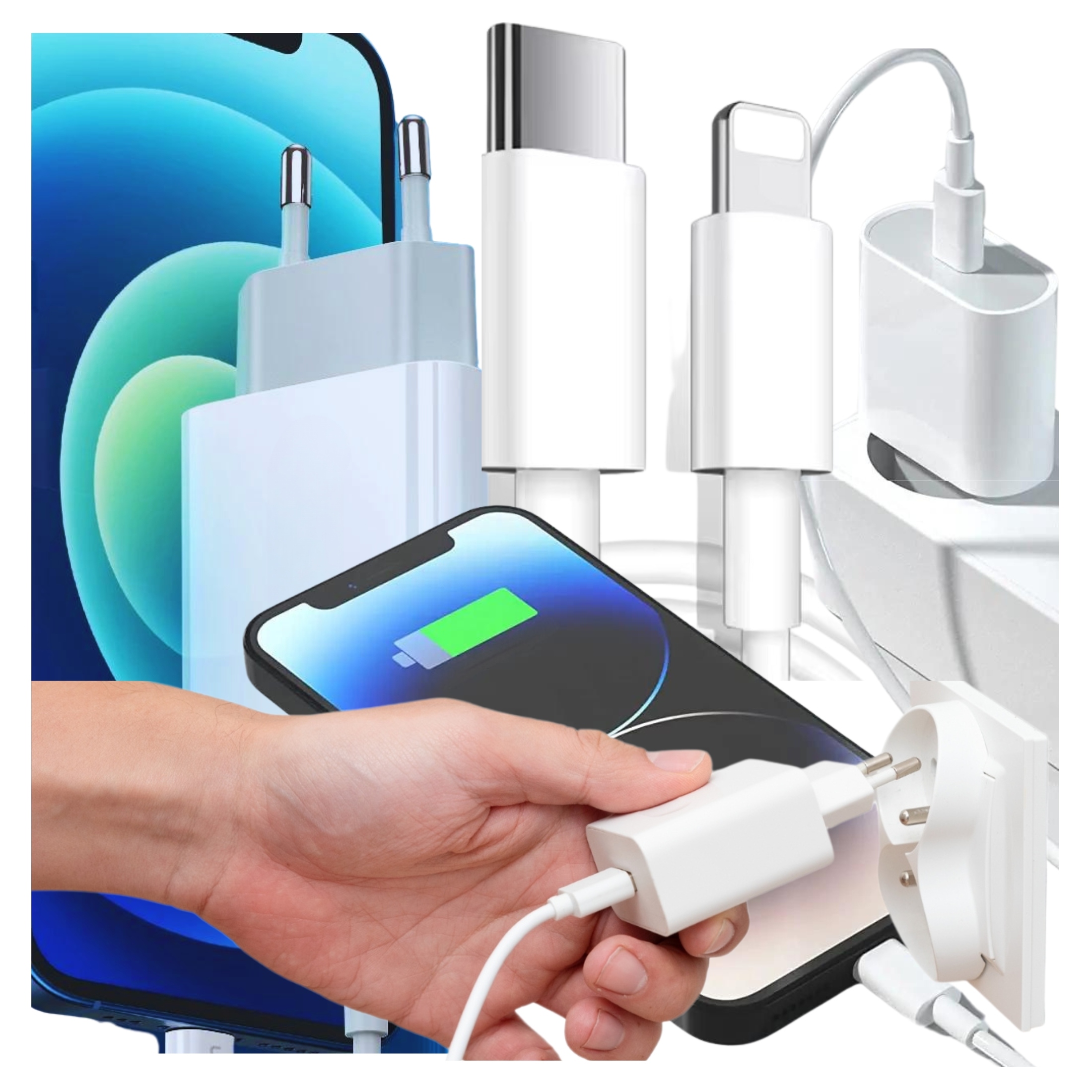 ✅ Szybka Ładowarka Sieciowa 20W + Kabel 1M / USB-C - IPHONE LIGHTNING