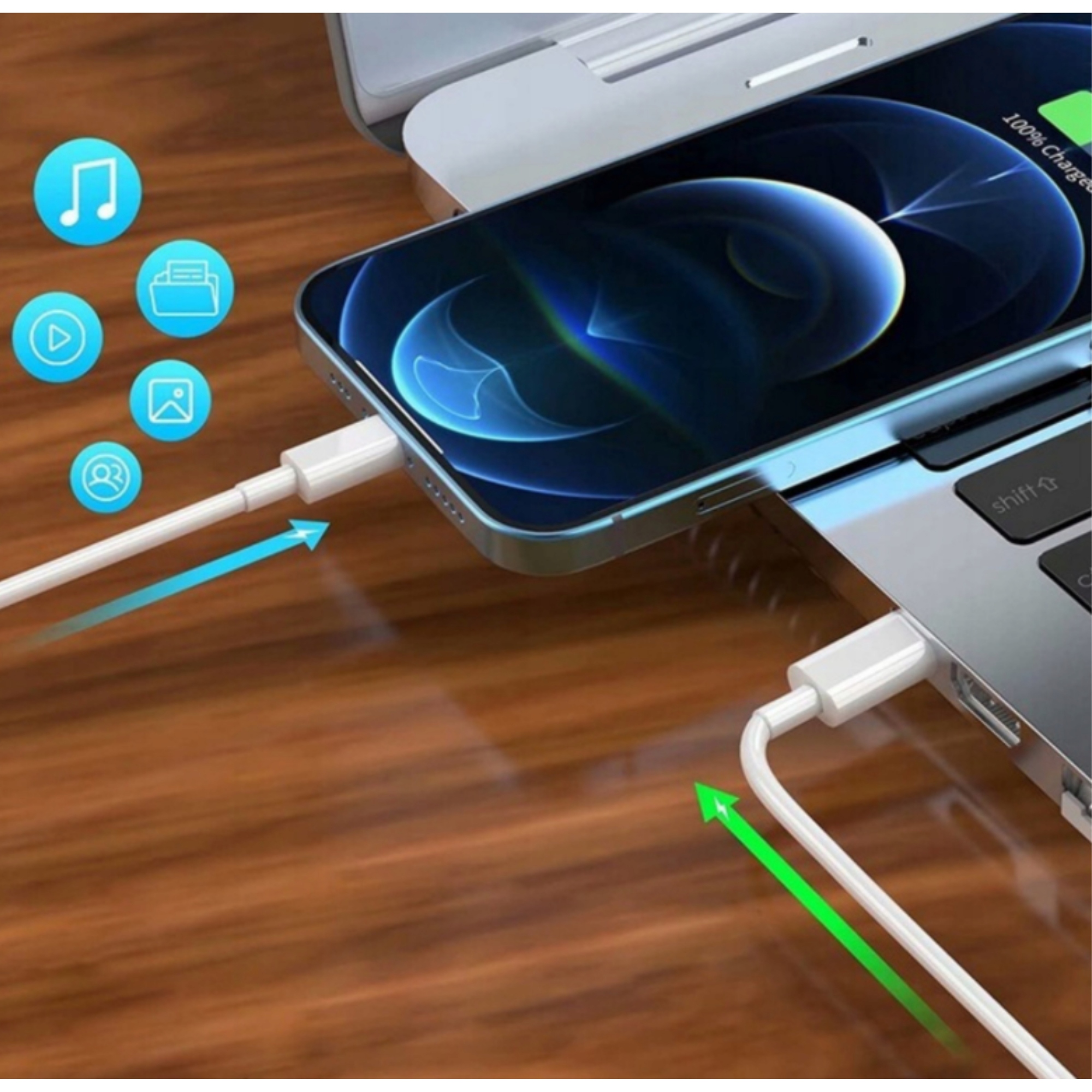 Jeśli potrzebujesz kabla do ładowania swojego iPhone / iPod, który jednocześnie umożliwi transfer danych, to warto postawić na ten prezentowany w tej ofercie zestaw który pozwoli Ci na szybkie i łatwe przenoszenie plików, zdjęć i muzyki między Twoim urządzeniem a komputerem lub innymi urządzeniami zgodnymi z interfejsem LIGHTNING.