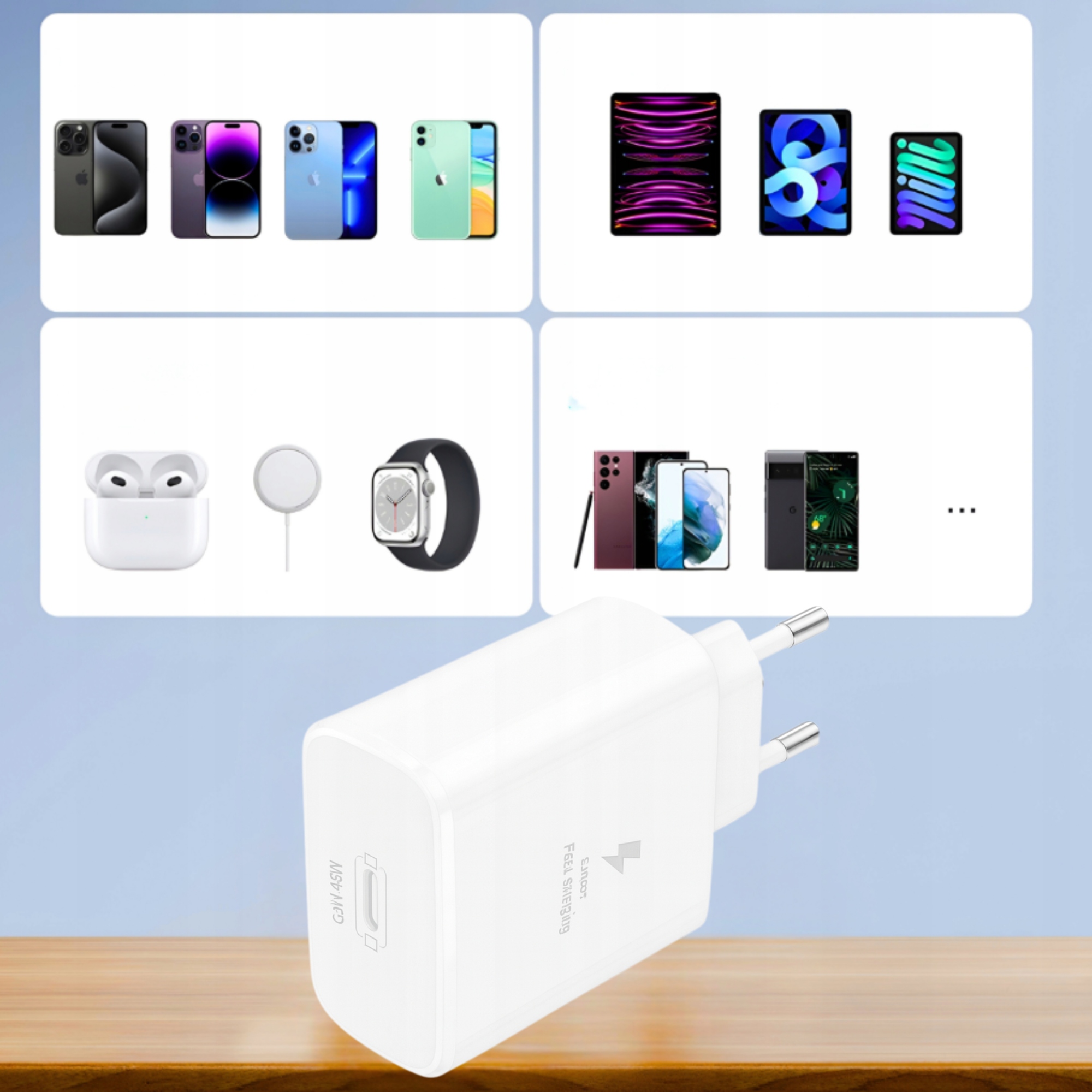 ✅ Uniwersalna Kompatybilność – Ładowarka jest kompatybilna z szeroką gamą urządzeń, w tym smartfonami, tabletami i inną elektroniką. Dzięki temu możesz ładować różne urządzenia bez potrzeby korzystania z kilku różnych ładowarek, co zapewnia pełną wygodę i wszechstronność.